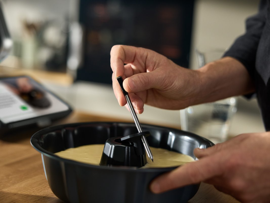 Unikátní chytrý teploměr měří vnitřní teploty masa, ryb i litých a kynutých těst na jednotky stupně. Integrován do Průvodce vařením.